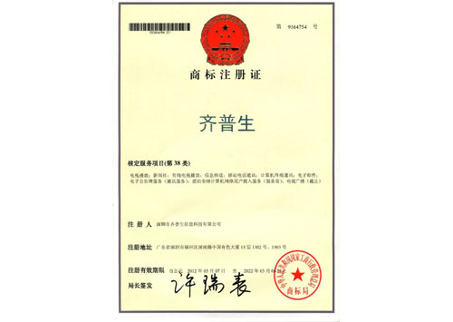 • 齊普生商標(biāo)注冊(cè)證
